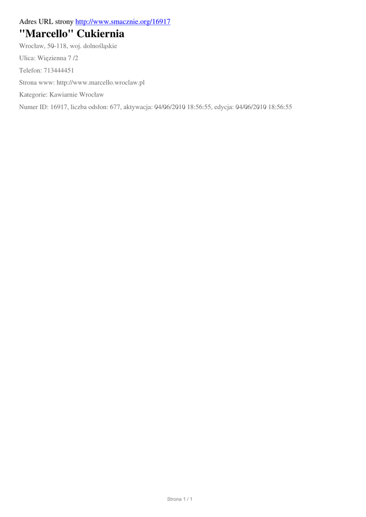"Marcello" Cukiernia, Wroclaw, Wiezienna 7 /2