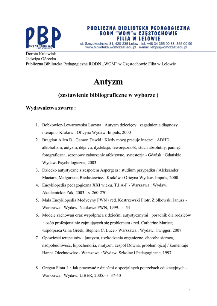 Autyzm - Publiczna Biblioteka Pedagogiczna RODN "WOM" w