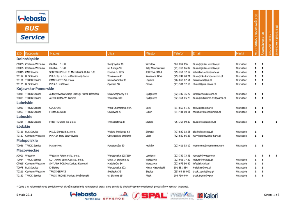 Lista Webasto BUS Service