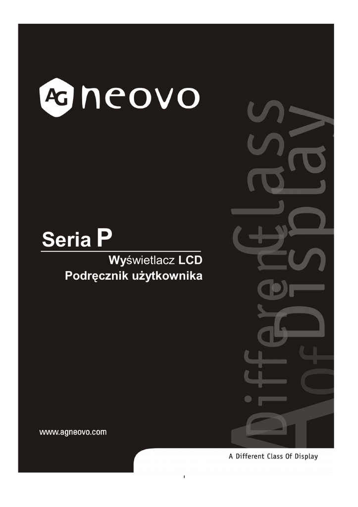 Seria P Wyświetlacz LCD Podręcznik użytkownika 1 Spis treści ŚRODKI OSTROŻNOŚCI.............................................................................................. 3 INSTALACJA .................................................................................................................. 3 PODŁĄCZENIE ZASILANIA ................................................................................................ 3 REGULACJA KĄTA WIDZENIA WYŚWIETLACZA LCD ............................................................. 3 MONTAŻ NA ŚCIANIE....................................................................................................... 4 Czynność 1 - Złożenie podstawy ............................................................................. 4 Czynność 2 - Zamontowanie pokrywy dekoracyjnej................................................ 4 Czynność 3 - Zamontowanie wyświetlacza LCD na ścianie .................................... 4 KONSERWACJA ............................................................................................................. 5 TRANSPORT .................................................................................................................. 5 ROZPOCZĘCIE UŻYWANIA......................................................................................... 6 ZAWARTOŚĆ OPAKOWANIA ............................................................................................. 6 PRZYCISKI STEROWANIA ................................................................................................. 7 INSTALACJA .................................................................................................................. 8 REGULACJA WYŚWIETLACZA LCD .......................................................................... 9 W YBÓR FUNKCJI OSD ................................................................................................... 9 Wejście D-SUB........................................................................................................ 9 Wejście DVI........................................................................................................... 19 Wejście CVBS ....................................................................................................... 27 Wejście S-Video .................................................................................................... 35 KOMUNIKATY OSTRZEGAWCZE I ROZWIĄZYWANIE PROBLEMÓW .................. 43 KOMUNIKATY OSTRZEGAWCZE ...................................................................................... 43 INSTRUKCJA ROZWIĄZYWANIA PROBLEMÓW .................................................................... 44 SPECYFIKACJE TECHNICZNE ................................................................................. 45 SPECYFIKACJE ............................................................................................................ 45 P-19....................................................................................................................... 45 P-17....................................................................................................................... 45 REGULACJA PRAWNE.............................................................................................. 46 ZGODNOŚĆ Z FCC ...................................................................................................... 46 WEEE....................................................................................................................... 47 TCO'99 ..................................................................................................................... 48 TCO'03 ..................................................................................................................... 50 2 Środki ostrożności Instalacja Nie należy blokować otworów wentylacyjnych z tyłu monitora. Nie należy instalować monitora w pobliżu źródeł ciepła takich jak grzejniki lub w pobliżu przewodów wentylacyjnych albo w miejscach bezpośredniego oddziaływania światła słonecznego, w miejscach nadmiernie zakurzonych, narażonych na wibracje mechaniczne lub wstrząsy. Podłączenie zasilania Należy użyć przewód zasilający odpowiedni dla napięcia w lokalnej sieci zasilającej. Należy użyć dostępne gniazdo zasilania znajdujące się najbliżej monitora. Nie należy umieszczać na przewodzie zasilającym żadnych przedmiotów. Przewód zasilający należy odłączyć od zasilania, gdy: Monitor nie będzie używany w dłuższym okresie czasu. Kabel jest uszkodzony lub porwany. Monitor został upuszczony lub uszkodzona została obudowa monitora. Wyraźna zmiana jakości działania wskazuje na potrzebę naprawy. Regulacja kąta widzenia wyświetlacza LCD Wymagany kąt nachylenia wyświetlacza LCD można wyregulować w zakresie 10°~30° przytrzymując górną część panela obydwiema rękami i przechylając panel do tyłu i do przodu. Maksymalny kąt nachylenia monitora to 30°; nie można naciskać monitora dalej, gdy kąt nachylenia osiągnął wartość 30°. 3 Montaż na ścianie Aby zamontować monitor LCD na ścianie należy wykonać podane poniżej instrukcje. Czynność 1 - Złożenie podstawy W celu przygotowania tego monitora LCD do zawieszenia na ścianie, naciśnij niebieski i złóż podstawę przycisk w dolnej części podstawy w kierunku oznaczonym symbolem pod kątem 90 stopni, zgodnie z ilustracją poniżej. Czynność 2 - Zamontowanie pokrywy dekoracyjnej (1) Kierując zatrzaski do góry wstaw pokrywę dekoracyjną do kwadratowych otworów w dolnej części panela przedniego. (2) Naciśnij pokrywę dekoracyjną w celu jej dokładnego dopasowania do panela przedniego. Czynność 3 - Zamontowanie wyświetlacza LCD na ścianie Otwory do montażu na ścianie są zgodne ze standardem VESA. Zaleca się stosowanie śrub o długości nieprzekraczającej 10mm. Cztery otwory do montażu na ścianie, umożliwiaj