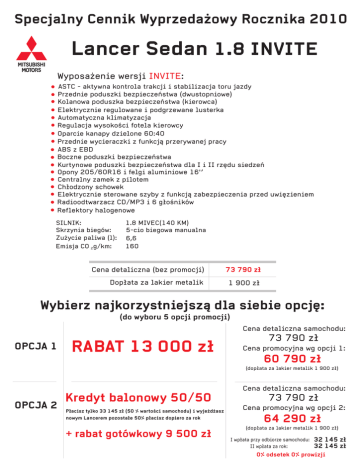 Cennik Wyprzedażowy 2010 Lancer Sedan