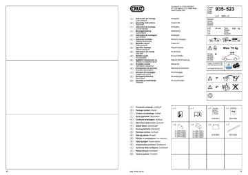 Cruzber S.A., ES-A14018311 P.I. Las Salinas II, E-14960 Rute www.cruzber.com Código Code Code Kode Kit fijación Modelo Model Modèle Modell 935- 523 Lv 7 E GB F D PT PL CZ HU RO HR GR TR RU IT NL SLO Instrucción de montaje ¡Leer primero! Assembly instructions Read first! Instruction de montage Lire en premier! Montageanleitung Zuerst lesen! Instruções de montagem Ler primeiro! Instrukcja montażu Najpierw przeczytaj! Montážní návod Čtěte pozorně! Szerelési Utasítás Először olvasd el! Instructiuni de montaj Intai cititi! Detaljne upute Prvo procitati! Διαβάστε προσεκτικά τις Οδηγίες Συναρμολόγησης! Öncelikle montaj: Talimatlarını okuyunuz! Инструкции по монтажу Сначала прочитайте! Istruzioni di montaggio Leggere per primo! Montagehandleiding Eerst lezen! Navodila za sestavljanje Preberite! Fixation Kit Kit fixation Lote Lot Lot Lot Stützfuß-Kit Kit fixação 2014 - r 2 01 -14 Peso 0,97 Weight Poids Gewicht Element mocujący kg Label... 000-000 Fixační kit Rögzítő készlet kg Kit de fixare E Κιβώτιο (Κit) Επισκευής Kit tipo Kit type Kit type Kit Typ Montaj kiti Código Homologación CEE EEC Type Approval Number Крепежный комплект e9*74/483*87/354*3017 Kit za montažu Max: 75 kg Kit di fissaggio Bevestigingsset 1º Kit za pričvrstitev 2º E GB 4/4 Contenido embalaje: ¡Verificar! Package content: Check! F Contenu d’emballage: Vérifier! D Packungsinhalt: Überprüfen! PT Contéudo embalagem: Verificar! PL Zawartość opakowania: sprawdź! CZ Obsah balení: Zkontrolujte! HU Csomag tartalma: Ellenőrizd! RO Pachetul contine: Verificati! HR Sadrzaj paketa: Provjeri! GR Ελέγξτε το περιεχόμενο: του πακέτου! TR Paket içeriğini: Control ediniz! RU Содержание упаковки: Проверьте! IT Contenuto della confezione: Controllare! NL Pakket inhoud: Controleer! SLO Vsebina paketa: Preverite! DIN 75302: 02.91 x1 x1 x1 x1 (810-052) (018-041) x4 1x (704-1922) 1x (704-1924) 1x (704-1926) 1x (704-1928) x4 1x (704-1921) 1x (704-1923) 1x (704-1925) 1x (704-1927) x1 x4 (012-060) (001-820) 1/4 Código Code Code Kode 935- 523 Lv 7 1 1 A nº1923 nº1925 2014 - r 2 2 nº1924 nº1926 nº xxxx B 5 Nm Importante! Important! Important! Wichtig! E GB F D PT PL CZ HU RO HR GR TR RU IT NL SLO x xxx ¡Este Kit de fijación tiene que usarse con sistemas portacargas Cruz! This fixation Kit must be used with Cruz roof rack systems! 600mm nº1928 nº1921 nº1927 700mm nº xxxx Cet Kit de fixation devra être utilisé avec les systèmes portecharge Cruz! Dieser Stützfuß-Kit muß mit Cruz Dachträgersystemen benutzt werden! Este Kit de fixação deve ser utilizado com os sistemas porta cargas Cruz! Niniejszy element mocujący musi być używany z systemami bagażników dachowych firmy Cruz! Tento fixační kit musí být používán s nosným systémem Cruz! Ez a rögzítő készlet cask a Cruz rendszerekkel használható! BMW X3 x xxx 450mm 700mm Acest Kit de fixare, trebuie utilizat cu sisteme Cruz! Kit za montažu mora biti korišten uz Cruz sistem krovnog nosača! Το αξεσουάρ αυτό θα πρέπει να χρησιμοποιείται αποκλειστικά στα συστήματα μπαρών της Cruz! Bu aksesuar mutlaka Cruz taşıma sistemleriyle kullanılmalıdır! Крепежный комплект должен быть использован с багажной системой на крышу марки Cruz! BMW Serie 3 (12 -->) Questo kit di fissaggio deve essere usato con i portapacchi CRUZ 350mm x xxx 700mm Deze bevestigingsset moet worden gebruikt in combinatie met Cruz dakdrager systeem! Kit za pričvrstitev naj se uporablja le z izdelki iz asortimana strešnih košar CRUZ! 3 2/4 nº1922 3 BMW Serie 3 (2010 --> 2011) 3/4