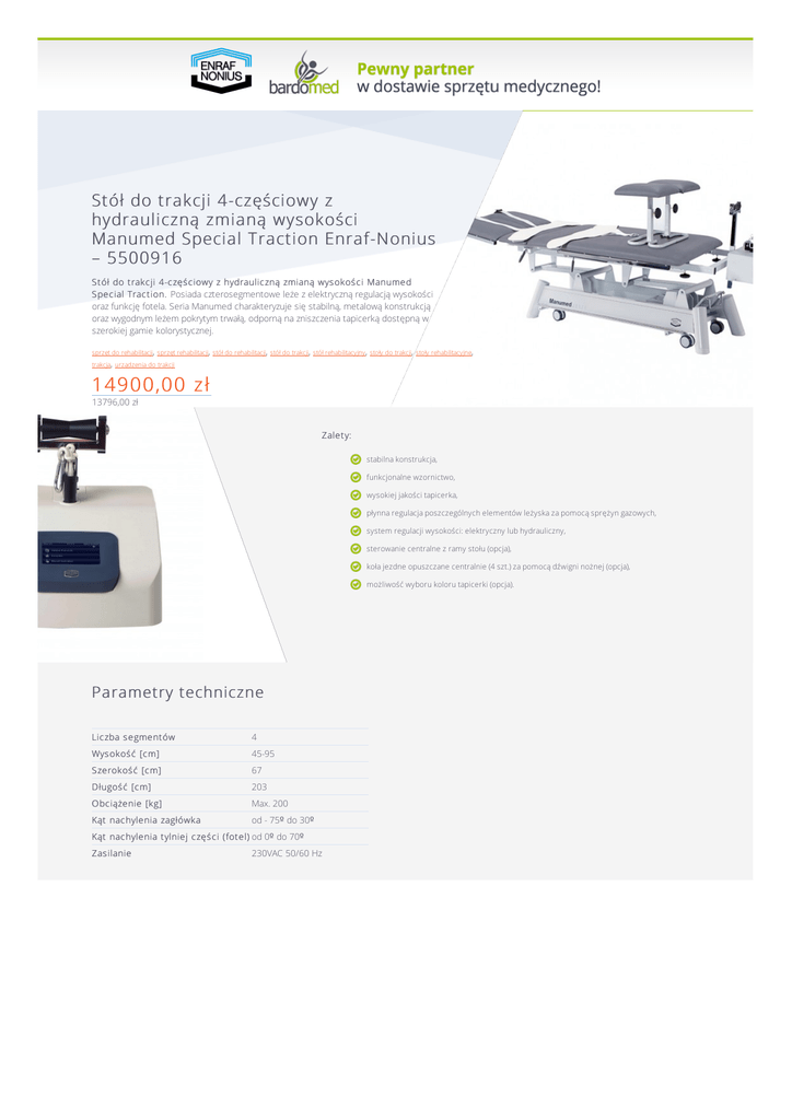 Stół do trakcji 4-częściowy z hydrauliczną zmianą - Enraf