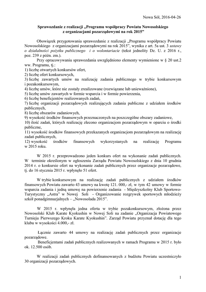 1 Nowa Sól, 2016-04-26 Sprawozdanie z realizacji „Programu