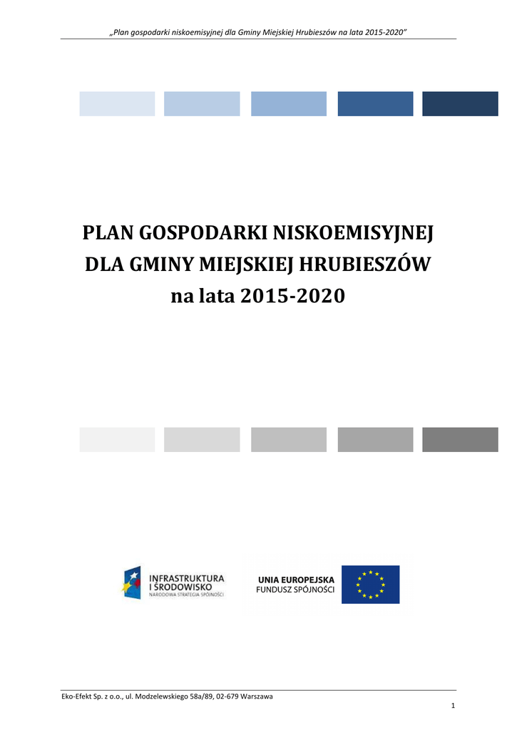 „Plan gospodarki niskoemisyjnej dla Gminy Miejskiej Hrubieszów na lata 2015-2020” PLAN GOSPODARKI NISKOEMISYJNEJ DLA GMINY MIEJSKIEJ HRUBIESZÓW na lata 2015-2020 Eko-Efekt Sp. z o.o., ul. Modzelewskiego 58a/89, 02-679 Warszawa 1 „Plan gospodarki niskoemisyjnej dla Gminy Miejskiej Hrubieszów na lata 2015-2020” Zamawiający: Gmina Miejska Hrubieszów mjr. H. Dobrzańskiego "HUBALA" 1, 22-500 Hrubieszów Wykonawca: Eko-Efekt Sp. z o.o. 02-679 Warszawa www.ekoefekt.pl ul. Modzelewskiego 58A lok. 89 tel. 22 853 11 93 / 853 82 12 fax. 22 852 03 54 e-mail: [email protected] Prezes Zarządu: mgr Andrzej Tuka Koordynator opracowania: dr Tomasz Nowicki Zespół: mgr inż. Rafał Odrobiński Maria Stachurka - Geller mgr inż. Antoni Tworkowski mgr Bartosz Wiśniakowski inż. Paweł Wieczorek mgr inż. Zuzanna Wlazło inż. Elżbieta Wójcik dr Eko-Efekt Sp. z o.o., ul. Modzelewskiego 58a/89, 02-679 Warszawa 2 „Plan gospodarki niskoemisyjnej dla Gminy Miejskiej Hrubieszów na lata 2015-2020” Spis treści 1. 2. 3. Wstęp ............................................................................................................................................ 9 1.1. Podstawy formalne opracowania Planu… ........................................................................ 10 1.2. Cel i zakres dokumentu ..................................................................................................... 11 Polityka energetyczna na szczeblu międzynarodowym .............................................................. 13 2.1. Polityka UE ........................................................................................................................ 13 2.2. Dyrektywy Unii Europejskiej ............................................................................................. 25 Dotychczasowe działania Gmina Miejska Hrubieszów w zakresie efektywności energetycznej, gospodarki niskoemisyjnej oraz wykorzystania energii ze źródeł odnawialnych ....................... 26 4. Charakterystyka społeczno-ekonomiczna Gminy Miejskiej Hrubieszów .................................... 29 4.1. Lokalizacja miasta ............................................................................................................. 29 4.2. Klimat ................................................................................................................................ 31 4.4. Demografia ....................................................................................................................... 38 4.5. Rolnictwo i leśnictwo ........................................................................................................ 41 4.6. Infrastruktura miejska....................................................................................................... 42 4.6.1. Zasoby mieszkaniowe ............................................................................................. 42 4.7. Działalność gospodarcza ................................................................................................... 46 4.8. Sieć komunikacyjna........................................................................................................... 48 4.9. Infrastruktura techniczna.................................................................................................. 48 4.9.1. Gospodarka wodna................................................................................................. 48 4.9.2. Gospodarka ściekowa ............................................................................................. 50 4.9.3. Gospodarka odpadowa........................................................................................... 51 4.10. Obszary chronione i cenne przyrodniczo .......................................................................... 52 5. Stan środowiska .......................................................................................................................... 57 5.1. Wody ................................................................................................................................. 57 5.1.1. Jakość wód powierzchniowych............................................................................... 57 5.1.2. Jakość wód podziemnych ....................................................................................... 60 6. 5.2. Hałas.................................................................................................................................. 61 5.3. Pola elektromagnetyczne ................................................................................................. 62 Charakterystyka nośników energetycznych zużywanych na terenie Gminy Miejskiej Hrubieszów ..................................................................................................................................................... 64 6.1. Energia elektryczna ........................................................................................................... 64 Eko-Efekt Sp. z o.o., ul. Modzelewskiego 58a/89, 02-679 Warszawa 3 „Plan gospodarki niskoemisyjnej dla Gminy Miejskiej Hrubieszów na lata 2015-2020” 6.1.1. Oświetlenie ulic i placów ........................................................................................ 67 6.1.2. Liczba odbiorców oraz zużycie energii elektrycznej ............................................... 69 6.2. Ciepło sieciowe ................................................................................................................. 69 6.2.1. Opis systemu ciepłowniczego ................................................................................. 69 6.2.2. Źródła ...................................................................................................................... 70 6.2.3. Odbiorcy ................................................................................................................. 71 6.3. System gazowniczy .....................