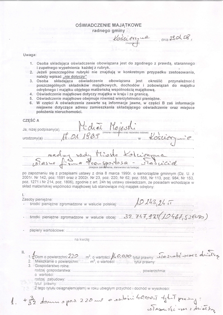 oświadczenie majątkowe za 2007 r.