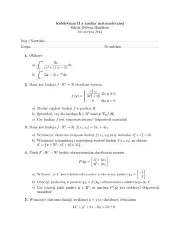 Kolokwium II z analizy matematycznej Szkoła Główna - E-SGH