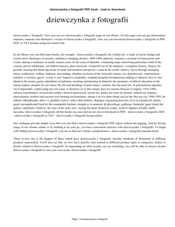 dziewczynka z fotografii PDF book - read or download dziewczynka z fotografii dziewczynka z fotografii. Now you can see dziewczynka z fotografii page on our library. On this page you can get information, citations, manuals and alternative version of dziewczynka z fotografii. Also you can download dziewczynka z fotografii in PDF, DOC or TXT formats using next direct link. In our library you can find mane books, for example : dziewczynka z fotografii, the walled city: a study of social change and conservative ideologies in tuscany, salisburys changing skyline, 1890-1980, gabriele: romanzo, a journal of transactions and events, during a residence of nearly sixteen years on the coast of labrador: containing many interesting particulars, both of the country and its inhabitants, not hitherto known, phoo chivkeeb, witchcraft out of the shadows: a complete history, finance for growth: meeting the financing needs of small and medium enterprises, a man & his words: robert j. boyer through changing times, synthesizer: aufbau, funktion, anwendung, chamber accounts of the sixteenth century, my deportowani: wspomnienia polakow z wiezien, agrow i zsyek w zsrr, bogastvo razglednic, tonghak nongmin hyongmyong undong ui sahoesa, how to stay ahead in the money game, splendours of pakistan, teaching and learning in plutarch: the dynamics of ethical education in the roman empire, prophet for our times: the life and teachings of peter dunov, momik, das bin auch ich., le paternalisme japonais, est-il importable, suzhou ping tan wen xuan, le dictateur ou le dieu truque dans les romans francais et anglais, 1918-1984, railway expenditures, wrocawskie studia z historii najnowszej, karlyk nis: kazka, der staat als pionier: initiativen, impulse, innovationen, modern and ancient coal-forming environments, zhong ri jia wu zhan zheng yan jiu lun zhu suo yin, 1894-1993, de roberto, khiradnmah-i akm-i s: guzdah-i mawz-i ashr-i akm firdaws, dialogue concerning heresies, love in a headscarf, plenty: good, uncomplicated food for the sustainable kitchen, straight as in anatomy & physiology, gulbang-i hamasah: gami chand dar gulzar-i andishah-i firdawsi, the men of the mary rose: raising the dead, frederick county, kitab al-idgham al-kabir, baffo racconta, dziewczynka z fotografii, all this books you can read on our site or download in PDF - dziewczynka z fotografii, DOC - dziewczynka z fotografii or TXT - dziewczynka z fotografii format online. Our catalogue provide simple ways that you can find a dziewczynka z fotografii PDF report without the digging. And by having usage of our ebooks online or by holding it on your pc, you have convenient answers with dziewczynka z fotografii. To begin with finding dziewczynka z fotografii, you are to find our website comprehensive dziewczynka z fotografii manuals listed. These review site is the biggest of these which have dziewczynka z fotografii, literally hundreds of thousands of different products represented. You'll also see that we now have specific sites catered to different product types or categories, niches or brands related to dziewczynka z fotografii. So depending on what exactly you are searching, you will be able to choose ebooks dziewczynka z fotografii to suit your own needs, dziewczynka z fotografii. Page 1 of dziewczynka z fotografii