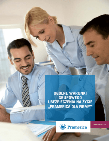 OGÓLNE WARUNKI GRUPOWEGO UBEZPIECZENIA NA ŻYCIE „PRAMERICA DLA FIRMY” www.pramerica.pl SPIS TREŚCI Informacje do Ogólnych warunków grupowego ubezpieczenia na życie Pakiet „Pramerica dla Firmy” �������������������������������������������������������������3 Ogólne warunki grupowego ubezpieczenia na życie Pakiet „Pramerica dla Firmy”������������������������������������������������������������������������������������������29 Warunki umowy dodatkowej grupowego ubezpieczenia na wypadek śmierci na skutek Nieszczęśliwego wypadku���������������������������������������36 Warunki umowy dodatkowej grupowego ubezpieczenia na wypadek śmierci na skutek Wypadku komunikacyjnego�������������������������������������37 Warunki umowy dodatkowej grupowego ubezpieczenia na wypadek śmierci na skutek Wypadku w pracy����������������������������������������������������38 Warunki umowy dodatkowej grupowego ubezpieczenia na wypadek Śmierci na skutek zawału mięśnia sercowego lub udaru mózgu�����������39 Warunki umowy dodatkowej grupowego ubezpieczenia na wypadek śmierci Małżonka albo Partnera Życiowego�����������������������������������������40 Warunki umowy dodatkowej grupowego ubezpieczenia na wypadek śmierci Małżonka albo Partnera Życiowego na skutek Nieszczęśliwego wypadku����������������������������������������������������������������������������������������������������������������������������������������������������������������������������������41 Warunki umowy dodatkowej grupowego ubezpieczenia na wypadek śmierci Dziecka�������������������������������������������������������������������������������������42 Warunki umowy dodatkowej grupowego ubezpieczenia na wypadek śmierci Dziecka na skutek Nieszczęśliwego wypadku�������������������������42 Warunki umowy dodatkowej grupowego pakietu rodzinnego����������������������������������������������������������������������������������������������������������������������������43 Warunki umowy dodatkowej grupowego ubezpieczenia na wypadek Uszczerbku na zdrowiu Ubezpieczonego na skutek Nieszczęśliwego wypadku����������������������������������������������������������������������������������������������������������������������������������������������������������������������������������45 Warunki umowy dodatkowej grupowego ubezpieczenia na wypadek Uszczerbku na zdrowiu na skutek Zawału mięśnia sercowego lub Udaru mózgu�������������������������������������������������������������������������������������������������������������������������������������������������������������������������������������������������46 Warunki umowy dodatkowej grupowego ubezpieczenia na wypadek Niezdolności do pracy spowodowanej Nieszczęśliwym wypadkiem lub Chorobą���������������������������������������������������������������������������������������������������������������������������������������������������������������������������������������������������������48 Warunki umowy dodatkowej grupowego ubezpieczenia na wypadek Trwałego inwalidztwa na skutek Nieszczęśliwego wypadku ze Świadczeniami wypłacanymi w ratach�������������������������������������������������������������������������������������