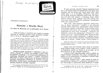 0 v N I E T Z S C H E I FJLOZOI'JA W czasie powstania „Jutrzenki" Nietzsche zastanawiał się nad tem, w jaki sposób możliwe jest uświadamianie sobie złudy, skoro stwarzamy sami (lub pewna część naszej istoty) złudę? Jeżeli zmysły łudzą, a my to poznajemy, dokonywamy tego pozna nia nie jakimś zmysłowym składnikiem naszej istoty, lecz logicz nym. Lecz jeżeli złuda wypływa z wezbranego potoku ekstazy radosnej, wówczas należy pojmować świat jako zjawisko este tyczne, jako szereg stanów podmiotu poznającego i fantasmagorję wedle prawa przyczynowości ). FRYDERYK KRANZLER 3 Siatka złudy, siatka fikcyjnych regularności zostaje narzu cona na płynną rzeczywistość i umożliwia w niej praktyczną orjentację. Każdy rodzaj kultury zapoczątkowuje właśnie zasnucie iluzją pewnego fragmentu rzeczywistości. Postęp ludzkości zależy od stwarzania iluzorycznych form. Ten popęd do artystycznego kształtowania jest przez naturę wkorzeniony i rozpoczyna swą działalność u zarania życia organicznego ). Filozofja jest w osta tecznym swoim celu i rodzaju produkcji sztuką. Wiedzą jest tylko przez środki wyrazu: pojęcia dyskursywne, w ogólnym zaś cha rakterze jest formą twórczości poetyckiej. Charakterystykę filozofa można ująć w słowach: „Poznaje tworząc i tworzy poznając" ). Nietzsche a filozofja fikcyj. . Les idees de Nietzsche sur la philosophie de la fiction. i Złuda jest jednym ze składników bytu. Pogląd ten wyznaje Nietzsche we wszystkich okresach swojej działalności filozoficz n e j ) . I tak już w „Narodzinach tragedji" pisze: J Im bardziej bowiem dostrzegam w naturze owe przepotężne p o p ę d y artystyczne, a w nich żarliwą tęsknotę do pozoru, do wyzwolenia się przez pozór, tembardziej czuję się zniewolonym do metafizycznego przypuszczenia,, że prawdziwe jestestwo i prajedność, jako wiecznie cierpiące i pełne sprzecz ności, potrzebuje też swego ustawicznego wyzwalania, zachwycającej wizji, rozkosznego pozoru, który to pozór my, całkiem w pozór tipowici i z niego złożeni, zmuszeni jesteśmy' odczuwać, jako to, co na prawdę nie istnieje, to znaczy, jako ustawiczne stawanie się w czasie, przestrzeni i przyczyno\vości innemi słowy, jako rzeczywistość empiryczną' ). r 2 \ 289 FIKCYJ Identyczny pogląd napotykamy w fragmentach z czasu po wstania „Jutrzenki" (r. 1880/81), lecz rozważany z punktu widze nia podmiotu poznającego, a nie rzeczywistości motafizycznej. Ta modyfikacja iluzjonizmu jest jednym z objawów emancypacji Nietzschego od wpływu Schopenhauera. W zależności bowiem o d metafizyki Schopenhauera kształtowała się pierwotna koncepcja Nietzschego i później dopiero, uniezależniając się od niej powoli, Nietzsche doszedł do koncepcji oryginalnej. 5 Dopóki się prawdy szuka w świecie, stoi się pod panowaniem popędu ten jednak pragnie rozkoszy, a nie prawdy, pragnie wiary w prawdę, a więc przyjemnych skutków wiary °). Zadanie, jakie sobie Nietzsche stawia, polega na wykazaniu ścisłej zależności między życiem, filozofja a sztuką. Zależność ta nie dyskredytuje wszakże ani filozofji co do jej głębi, ani też życia filozofa co do jego rzetelności myślowej ). Z powodu owego fragmentarycznego sposobu myślenia nie osiągnął Nietzsche wykończonej teorji fikcyj i .zaokrąglonego ith systemu, ale był niezmordowany w podkreśleniu celowości fikcyj i iluzorycznych form w ogólności. Celowość fikcyjnych pojęć i sądów objawia się dzięki ich instrumentalnemu charakterowi w praktycznej koincydencji z by tem, która polega na zorjentowaniu naszej działalności w obrębie 7 x ) H . Vaihingen Die Philosophie des Als Ob. Berlin 1911 Str 771—790 ) Geburt der Tragödie. Str. 34 i 35. Polskiej Edycji tom IX. Str. 36. 2 4 5 «) Nachgelasse Werke. XI. 74. Str. 183. ) Nachgl. W. X, 52. Str. 127. ) ib. 53. Str. 128. ) ib. X. 184. Str. 214. ) ib. 193. Str. 222. 6 7 290 PRZEGLĄD NIETZSCHE I FILOZOFJA HUMANISTYCZNY rzeczywistości. Mimo sfałszowania rzeczywistości zapomocą funkcyj logicznych osiągamy pełne zadowolenie naszych wymogów życiowych. Fałszywość jakiegoś sądu nie jest jeszcze dla nas przeciw sądowi temu zarzutem; w tem nowość mowy naszej brzmi snać najniezwyklej. Chodzi o to, o ile wpływa on na wzmożenie życia, na utrzymanie gatunku, może nawet na chów gatunku; i zasadniczo skłaniamy się do twierdzenia, iż najfałszywsze sądy (do których należą syntetyczne sądy a priori) są dla nas najniezbędniejsze, iż odmawiając znaczenia fikcjom logicznym, nie mierząc rzeczywisto ści miarą li zmyślonego świata absolutu, równego sobie—samemu, nie fałszu jąc liczbą nieustannie świata, człowiek nie mógłby żyć, że wyrzeczenie się fałszywych sądów byłoby wyrzeczeniem się życia, zaprzeczeniem życia. Uznać nieprawdę warunkiem życia: znaczy to wprawdzie w niebezpieczny sposób stanąć okoniem przeciwko nawykowym względem wartości uczuciom; filozofja zaś, która na to się odważy, staje tem samem poza dobrem i złem ). 8 Nietzsche podnosi z naciskiem niewspółmierność fikcji z rze czywistością oraz jej sprzeczność wewnętrzną; przy dedukcji fikcyjności pojęć opiera się jednak przeważnie na pierwszej cesze. Zaznacza także, że w praktyce naukowej okazują się fikcje przydatnemi. mimo swej fałszywości; sprzeczność ich wychodzi dopiero na jaw w zestawieniu z ostatecznemi rezultatami ). Natu ralną tedy, a nie dopowiedzianą nigdy przez Nietzschego kon sekwencją ich użycia będzie konieczność ich usunięcia po doko naniu danego rachunku myślowego oraz poprawa ich fałszywości mocą przeciwstawnego błędu. Co do świadomego użycia fikcyj, jako takich, to jest to postulat, związany z ich charakterem, któ rego spełnienia domaga się Nietzsche, dążąc usilnie do usunięcia złudnej identyfikacji fikcji z pojęciem, stanowiącem odbicie rze czywistości ) . 9 1 0 8 ) Jenseits von Gut u. Böse. 4