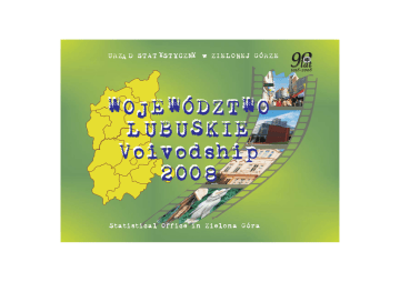 URZA D STAT YSTYCZNY w ZIELO NEJ GÓRZE WOJE WÓDZTWO LUBUSKIE Voivodship 200 8 Statistical Office in Zielona Góra 90 LAT G£ÓWNEGO URZÊDU STATYSTYCZNEGO 90 years of the Central Statistical Office W 2008 r. obchodzimy 90. rocznicê powo³ania G³ównego Urzêdu Statystycznego. 13 lipca 1918 r. Rada Regencyjna Królestwa Polskiego Reskryptem powo³a³a GUS. By³a to pierwsza jednostka centralnej administracji niepodleg³ego pañstwa polskiego. Przez ca³y okres GUS zachowa³ swoj¹ nazwê, program i zasady dzia³ania na rzecz obs³ugi informacyjnej spo³eczeñstwa i pañstwa. Przez 90 lat swojej dzia³alnoœci GUS prowadzi³ badania, przechowywa³ zbiory, sporz¹dza³ opracowania i publikowa³ wyniki. GUS i podleg³e mu jednostki dzia³a³y w okresie dwudziestolecia miêdzywojennego, w czasie II wojny œwiatowej oraz przez ca³y okres powojenny do czasu transformacji. W ca³ym okresie transformacji w okresie od 1989 r. statystyka publiczna by³a obiektywna i niezale¿na, nigdy nie sprzeniewierzy³a siê swoim zasadom, w tym szczególnie zasadzie tajemnicy statystycznej. Informacje GUS zawsze by³y dostêpne równoprawnie, równoczeœnie i równorzêdnie dla wszystkich. Informacja statystyki publicznej sta³a siê najwa¿niejszym elementem spo³ecznego ³adu informacyjnego transformuj¹cego siê spo³eczeñstwa i kraju. W listopadzie 1918 r. zosta³a równie¿ utworzona Biblioteka statystyczna. 2 th In 2008 we are celebrating 90 anniversary of establishing the Central Statistical Office. On 13 July 1918 on the strength of the Rescript the Regency Council of the Kingdom of Poland established the Central Statistical Office. It was the very first organization of central administration in independent Poland. For all that time the Central Statistical Office has had the same name and the same goal to provide the state and the nation with information. For 90 years of its existance the CSO has been doing surveys, collecting and processing data as well as publishing the results. The CSO and its subordinated branches th worked in the 20s and 30s of 20 century, during the world war II, after the war till the transformation period. During the time of transformation after 1989 public statistics was and still is objecive and independent, and it has never been disloyal to its principles, especially the principle of keeping a statistical secret. The data collected by the CSO has always been equally available to everyone and public statistics has become the most important element of social information order for the transforming society and state. Also, in November 1918 the Statistical Library was established. PODZIA£ ADMINISTRACYJNY WOJEWÓDZTWA Administrative division of voivodship Podzia³ terytorialny województwa lubuskiego w 2007 r. Territorial division of Lubuskie Voivodship in 2007 Dobiegniew ZACHODNIOPOMORSKIE Stan w dniu 1 I As of 1 Jan. STRZELECKODREZDENECKI Strzelce Krajeñskie Podregiony . . . . . . . . . . . . . . . . . . . Gminy ogó³em . . . . . . . . . . . . . . . . . miejskie . . . . . . . . . . . . . . . . . . . . . miejsko-wiejskie . . . . . . . . . . . . . . wiejskie . . . . . . . . . . . . . . . . . . . . . Miasta . . . . . . . . . . . . . . . . . . . . . . . Miejscowoœci wiejskie . . . . . . . . . . . Powiaty . . . . . . . . . . . . . . . . . . . . . . Miasta na prawach powiatu . . . . . . . Stare Kurowo K³odawa Lubiszyn Zwierzyn GORZOWSKI Gorzów Wlkp. Witnica Skwierzyna Deszczno Kostrzyn nad Odr¹ Krzeszyce S³oñsk Przytoczna SULÊCIÑSKI Górzyca Drezdenko Santok Bogdaniec WIELKOPOLSKIE Bledzew Lubniewice Oœno Lubuskie MIÊDZYRZECKI Pszczew S£UBICKI Sulêcin Miêdzyrzecz S³ubice Rzepin £agów Torzym Y I E M C Y E R M A N Œwiebodzin Lubrza Cybinka N G Trzciel Stan w dniu 1 I As of 1 Jan. Szczaniec 1,6% 2,5% Bytnica Maszewo Sk¹pe Krosno Odrzañskie KROŒNIEÑSKI Babimost Czerwieñsk 1,3% D¹bie Kargowa Trzebiechów 3,9% ZIELONOGÓRSKI Bojad³a Œwidnica Bobrowice Gubin Lubsko Nowogród Bobrzañski ¯ARSKI Brody Zielona Góra ¯ary m. Nowa Sól m. Przewóz Nowa Sól S³awa WSCHOWSKI Lasy i zadrzewienia Forests Wschowa Siedlisko Bytom Nowe Odrzañski Miasteczko BrzeŸnica ¯agañ U¿ytki rolne Agriculture lands Kolsko NOWOSOLSKI 49,1% Wody Water areas Szlichtyngowa Szprotawa ¯agañ m. Trzebiel £êknica Otyñ Ko¿uchów ¯ary Lipinki £u¿yckie Zabór Zielona Góra Jasieñ Tuplice 13988 km 2 Tereny komunikacyjne Transport areas Niegos³awice ¯AGAÑSKI Wymiarki Ma³omice DOLNOŒL¥SKIE I³owa 41,1% Gozdnica MIÊDZYRZECKI 0,5% Sulechów Gubin m. granica pañstwa state border podregion gorzowski subregion granica podregionów subregions border podregion zielonogórski subregion granice powiatów powiat borders miasta na prawach powiatu cities with powiat status granice gmin gmina borders Subregions Gminas in total urban gminas urban-rural gminas rural gminas Urban areas Rural areas Powiats Cities with powiat status Struktura powierzchni województwa wed³ug kierunków wykorzystania w 2007 r. Voivodship area structure according to directions of utilization in 2007 Zb¹szynek ŒWIEBODZIÑSKI 2 83 9 33 41 42 1377 12 2 Lubsko Tereny osiedlowe Housing areas Nieu¿ytki Wastelands Tereny pozosta³e Other areas siedziby gmin residences of gmina’s authorities powiat powiat 3 OCHRONA ŒRODOWISKA Environmental protection Jeziora lubuskie Lakes of Lubuskie Voivodship Zanieczyszczenia œrodowiska Pollutants of environmental Wiêksze jeziora powierzchnia a w ha Major lakes area a in ha S³awskie. . . . . . . . . . . . . . . . . . . . . . . . . . . . . . . . . . . . . Osiek z Ogardzk¹ Odnog¹ . . . . . . . . . . . . . . . . . . . . . Nies³ysz . . . . . . . . . . . . . . . . . . . . . . . . . . . . . . . . . . . . . Ostrowiec k/G³uska . . . . . . . . . . . . . . . . . . . . . . . . . . . . Lubikowskie . . . . . . . . . . . . . . . . . . . . . . . . . . . . . . . . . . Lubniewsko . . . . . . . . . . . . . . . . . . . . . . . . . . . . . . . . . . Ch³op . . . . . . . . . . . . . . . .