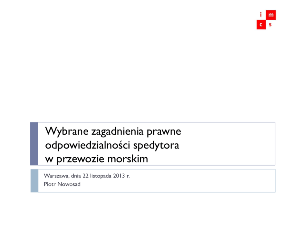 Wybrane zagadnienia prawne odpowiedzialności spedytora w przewozie