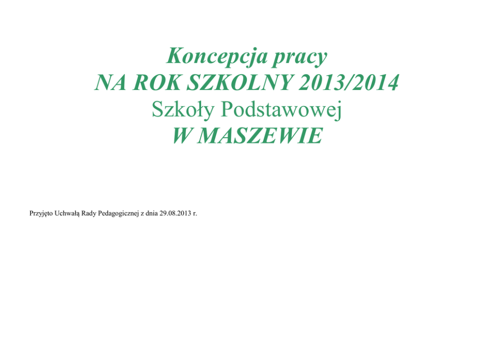 Koncepcja pracy NA ROK SZKOLNY 2013/2014 W MASZEWIE