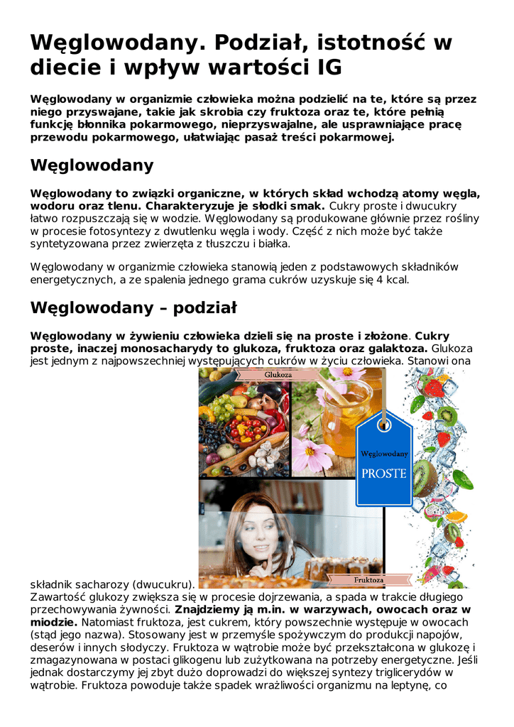 Węglowodany. Podział, istotność w diecie i wpływ wartości IG