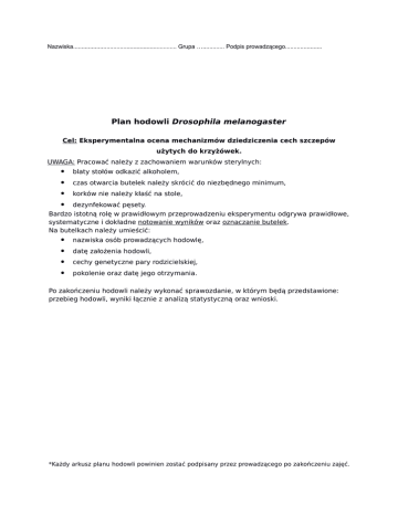 Plan hodowli Drosophila melanogaster