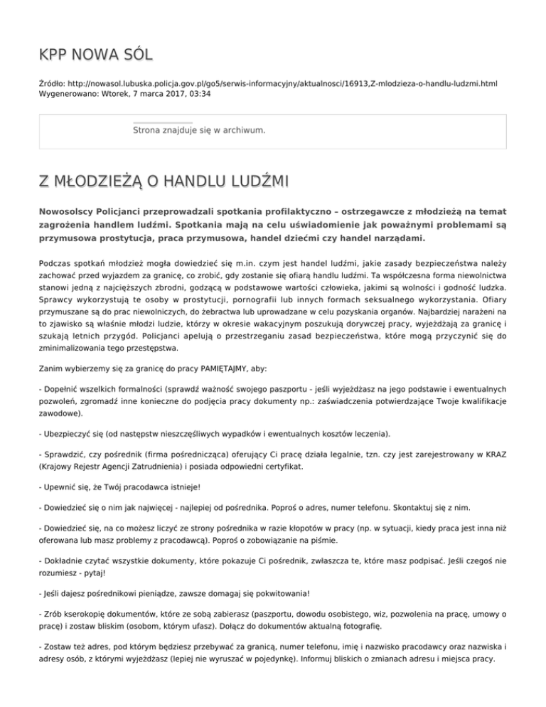 KPP NOWA SÓL Z MŁODZIEŻĄ O HANDLU LUDŹMI