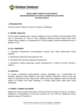 Regulamin turnieju - Gminne Centrum Kultury, Promocji i Turystyki w