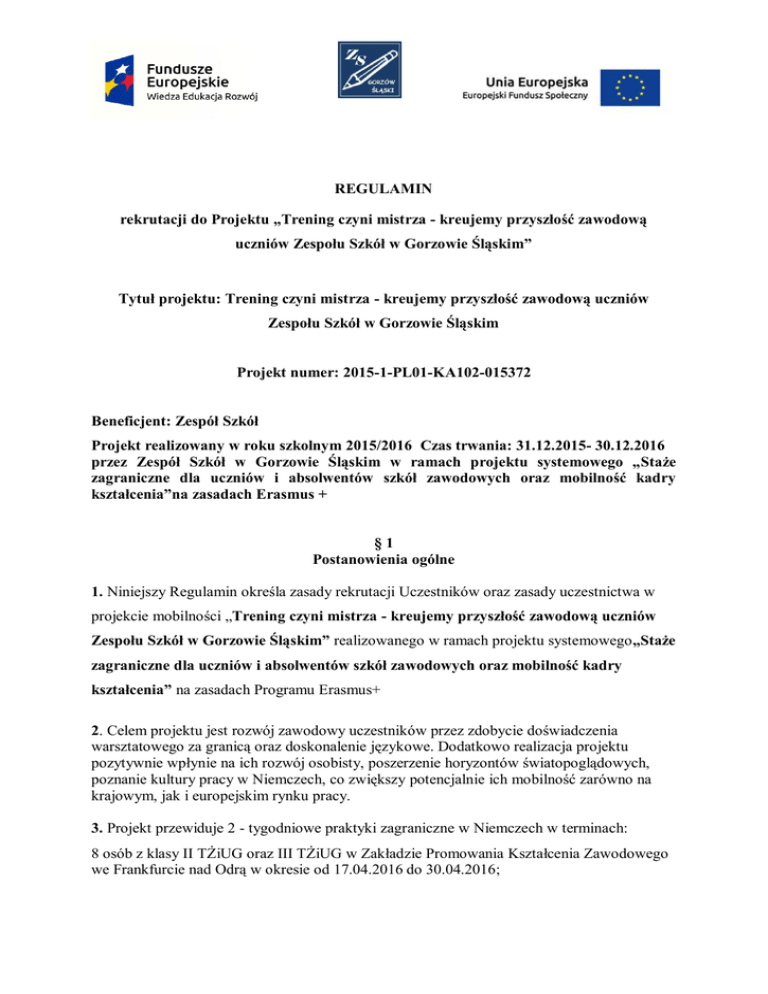 REGULAMIN rekrutacji do Projektu „Trening czyni mistrza