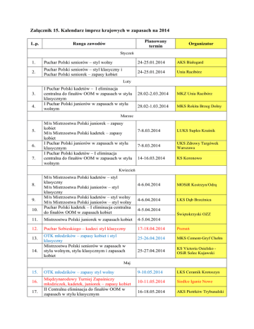Załącznik 15. Kalendarz imprez krajowych w zapasach na 2014