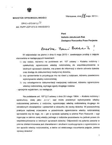 obydwoje rodzice musz^ miec dost^p zarowno do informacji o stanie zdrowia