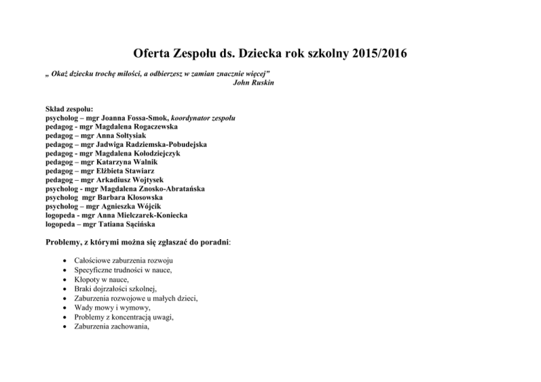 Oferta Zespołu ds. Dziecka na rok szkolny 2015/2016