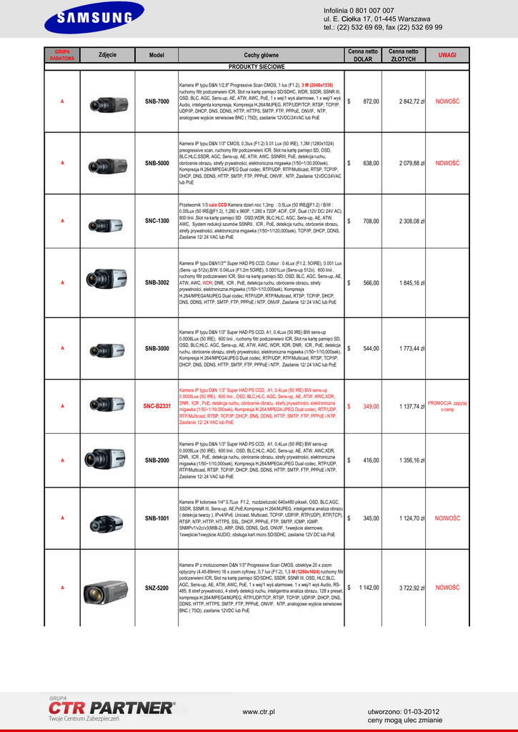 Cennik SAMSUNG Techwin
