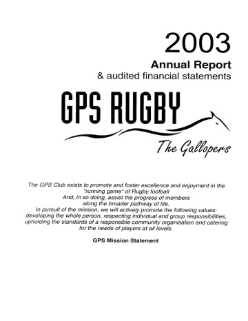 GPS OLD BOYS RUGBYUNIONCLUB INC.ANNUALREPORT2OO3