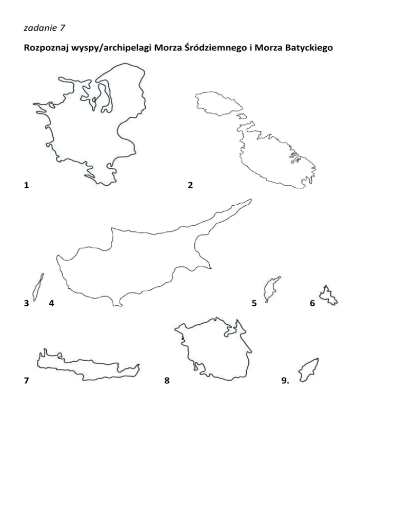 zadanie 7 Rozpoznaj wyspy/archipelagi Morza Śródziemnego i Morza Batyckiego 1 3 7 2 4 5 8 6 9. 10.