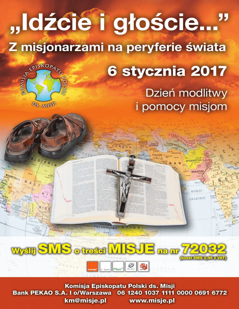 „Idźcie i głoście...” Z misjonarzami na peryferie świata 6 stycznia 2017 Dzień modlitwy i pomocy misjom Wyślij SMS o treści MISJE na nr 72032 (koszt SMS 2,46 z VAT) Komisja Episkopatu Polski ds. Misji Bank PEKAO S.A. I o/Warszawa 06 1240 1037 1111 0000 0691 6772 [email protected] www.misje.pl