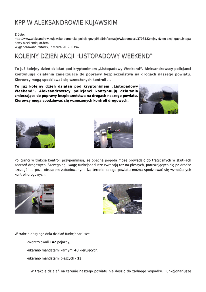 KPP W ALEKSANDROWIE KUJAWSKIM KOLEJNY DZIEŃ AKCJI
