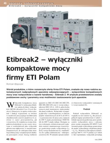 Etibreak2 – wyłączniki kompaktowe mocy firmy ETI Polam