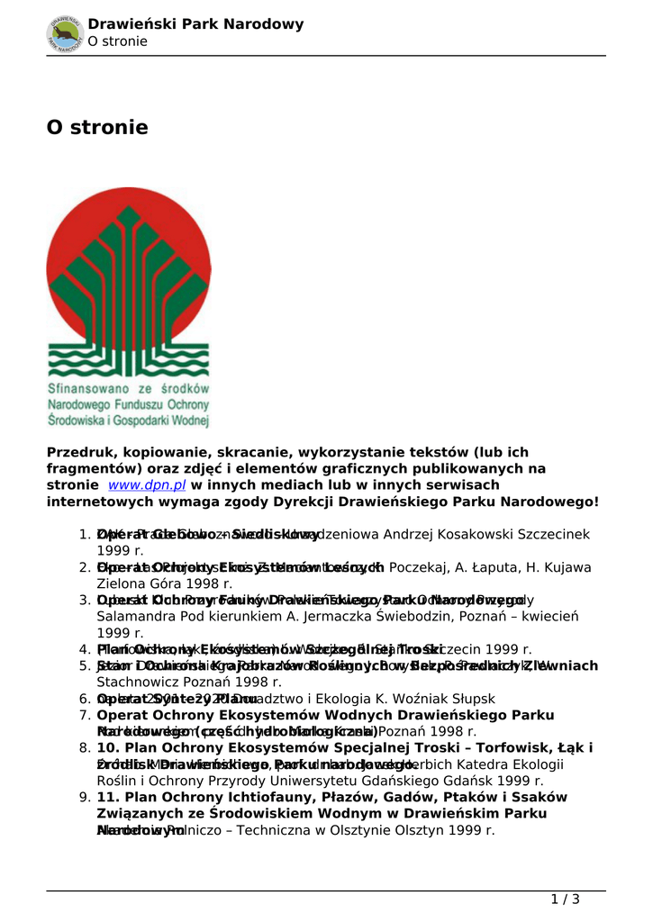 O stronie - Drawieński Park Narodowy