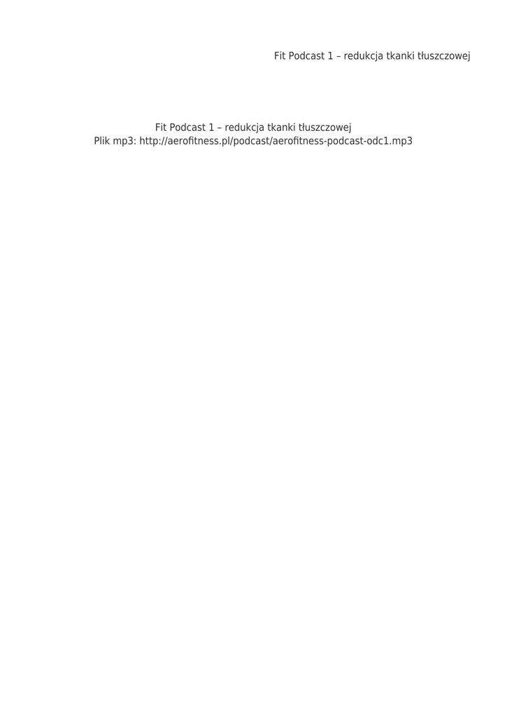 Fit Podcast 1 – redukcja tkanki tłuszczowej Fit Podcast 1 – redukcja tkanki tłuszczowej Plik mp3: http://aerofitness.pl/podcast/aerofitness-podcast-odc1.mp3