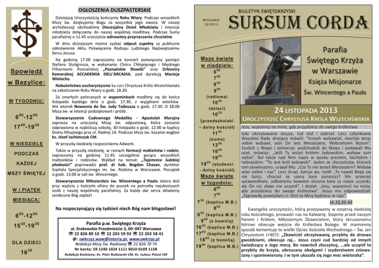 sursum corda - Parafia Św. Krzyża w Warszawie Krakowskie