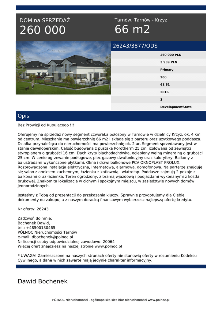 260 000 66 m2 - PÓŁNOC Nieruchomości