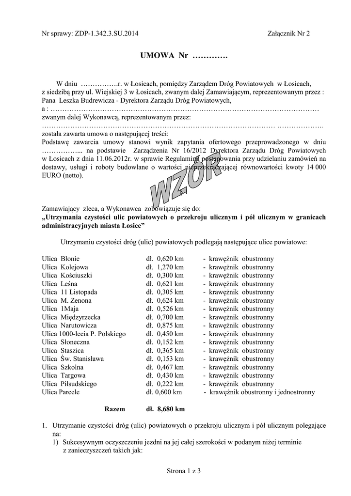 UMOWA WZOR za Nr 2 - Zarząd Dróg Powiatowych w Łosicach