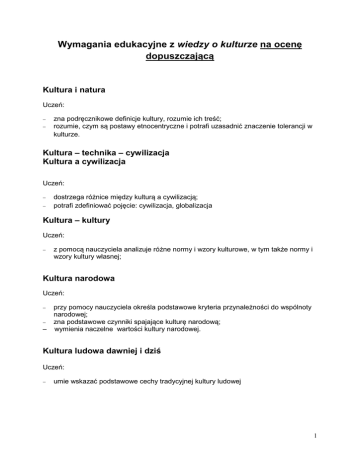 Wymagania edukacyjne z wiedzy o kulturze na ocenę dopuszczającą