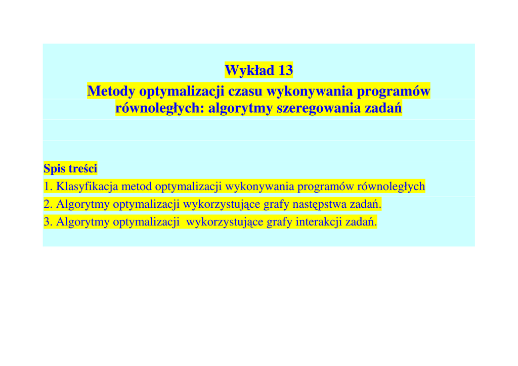 równoległych a w szczególności dla optymalizacji programów reprezentowanych przez