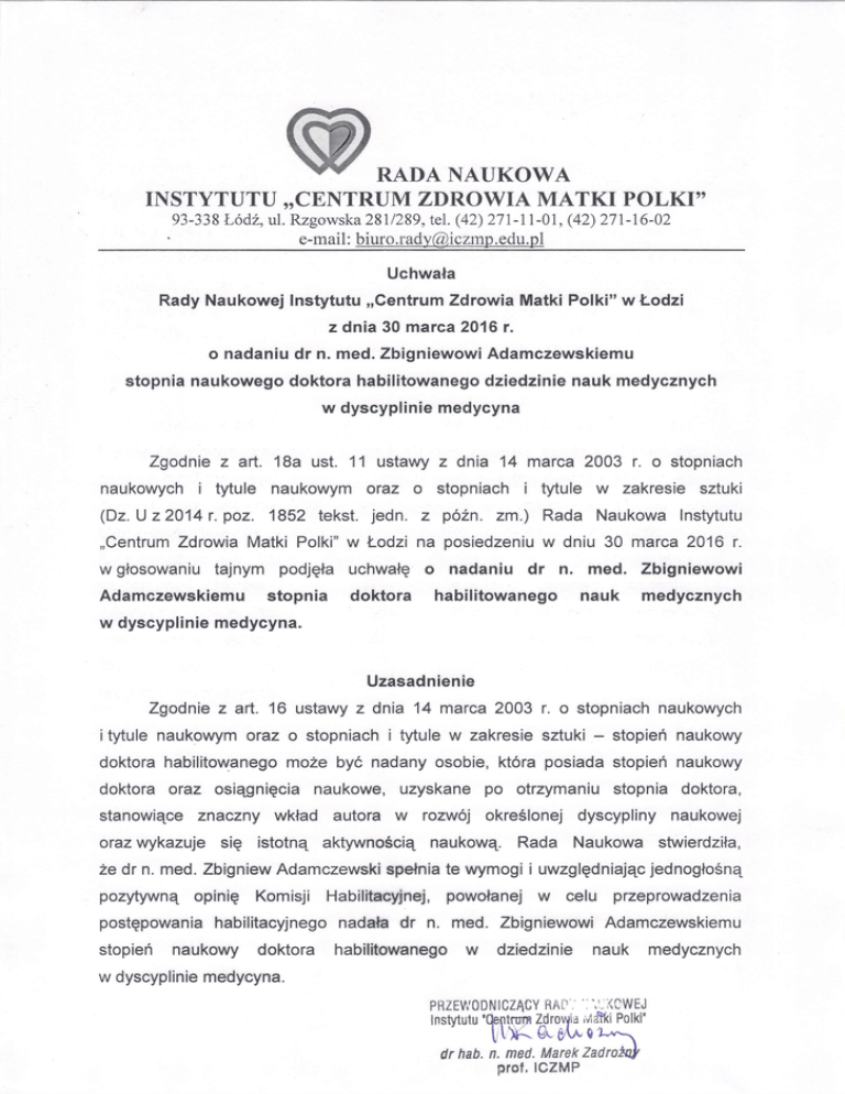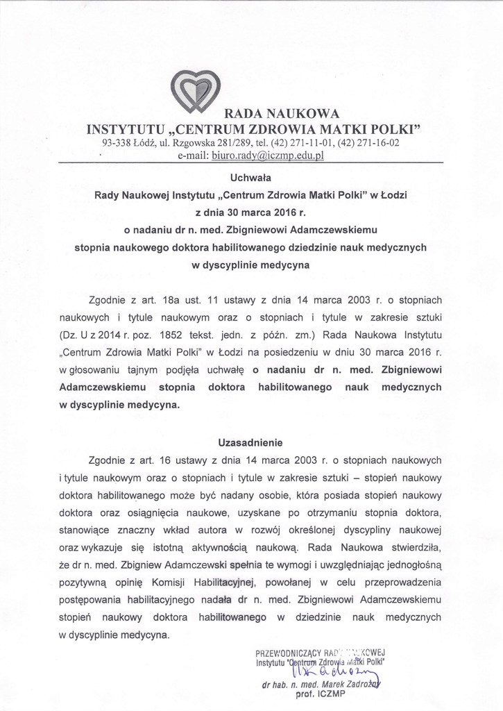 o nadaniudr n. med.ZbigniewowiAdamczewskiemu