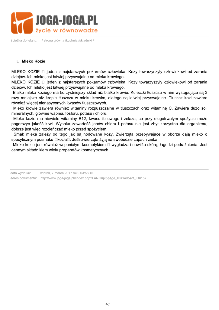 Mleko Kozie MLEKO KOZIE jeden z najstarszych - Joga-Joga