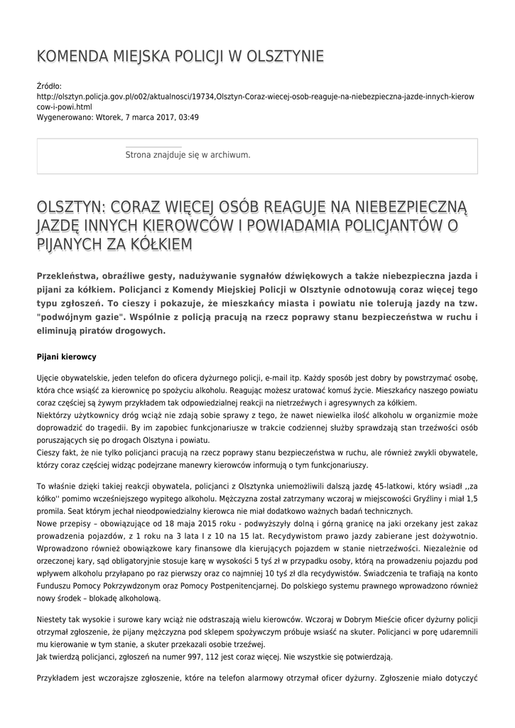 Generuj PDF - Komenda Miejska Policji w Olsztynie