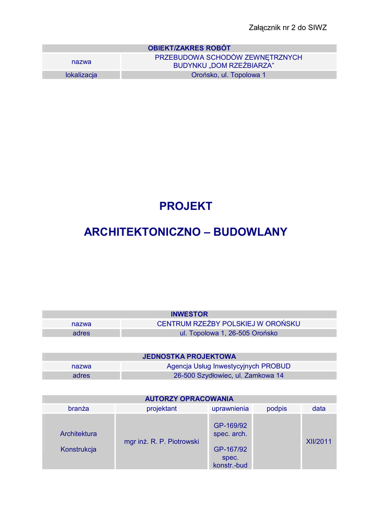 Załącznik nr 2 do SIWZ - Centrum Rzeźby Polskiej w Orońsku