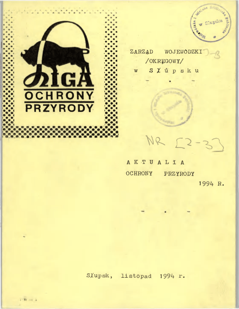 A" \ V \ «S ™ * * I Q V\ • • « • • > • • • • • * V i• • • • • t • • • • • • • • • • « > • • • • • •• ••( • • » • I • • 9 • I •• ••( • • a • i ~ • i 0 •• •< OCHRONY PRZYRODY i• • • • • i• • • • C i• • • • « l• • •• • • • • I• • I• • I• • » • • ZARZĄD WOJEWÓDZKI /OKRĘGOWY/ w S t u p s k u W • •« I • • 8 V •v.v.\v 7 • y . w . y Q0.ffiV0RW0SttSSSfllSfl ^ o - ^ r \ A K T U A L I A OCHRONY PRZYRODY 1 99^+ R. Stupsk, listopad 199^ r. Starnice, gmina Dębnica Kaszubska Krajobraz leśny z wkomponowany zabudowy osady leśnej nad zbiornikiem wodnym. Typ krajobrazu - morenowy. Grafika mgra inż.arch. Juliana Giedycha i . u i z q d u W o j o aod.-.kiego Ligi Ucluuity .-Prez.-39-32/1994 I n f o r m a c j a o działalności organiza cyjnej Zarządu Wojewódzkiego /Okręgowego/ Stowarzyszenia LIGA OCHRONY PRZYRODY w S t u p s k u 1994 1994 r. r U Dnia 21 kwietnia 1994 r. 1 rzeprov.'adzono plenarne, poszerzone 1/ zebranie Zarządu Y'ojev/6 Izkiego LOP w Stupsku przy udziale 30 os&b, z referatem Głównego Geologa V/ojev;6dzkiago mgr inż, Ev/y G 1 a z a, w związku z przypadającym właśnie "Dniem Ziemi 1994"« Recytatorski wys tęp Młodzieży z I Liceum Ogólnokształcącego w Słupsku uświetnił program 2/ tej imprezy. /Sygmatura akt - LOP.-Prez.-39-07/1994.-/• Zarząd Miej siei LOP w Słupsku ogłosił wiosny 1994 r. k o n k u r s dla Młodzieży Szkolnej Słupska na p l a k a t pod hasłem "SOS dla Ziemi 1994". 3/ Dnia 20 października 1994 r. zorganizowani zebranie plenarne Z.W. LOP /rozszerzone z okazji Jesiennych Dni Ochrony Przyrody/, przy uczestnttwie b y ł y Dra 22 os6b, z dwoma referatami - Inż. Jerzego P r z y n.t. aktualnego stanu środowiska w województwie słupskim oraz Stanisława K a c z. m a r k a Międzynarodowego Forum Bałtyckiego relacjonującym obrady VII-ego w Gdańsku, 19-21 XI 1993 Omó wiono również problemy organizacyjne Z.IV. LOP w Słupsku. Występ nuzyczr ny Młodzieży z Państwowej Szkoły Muzycznej w Słupsku urozmaicił program imprezy, w ramach którego znalazło się także otwarcie wystawy sozologiczno-krajoznąwczej przygotowanej przez Komisję Ochrony Przyrody PTTK w Słupsku. '/Sygnatura akt - LOP.-Prez.-39-22/1994*-/• 4/ Od września 1994 r. stałym i oficjalnym reprezentantem Z.'./.LOP w Wojewódzkiej Komisji Ochrony Przyrody przy Wojewodzie Słupskim jest V-Prezes Z.W.LOP Pani mgr Anna 5/ G ó r s k a - biolog i pedagog. W miesiącu wrześniu 1994 r. poruszano /Prezes Z.W.LOP/ w Radzie Miejskiej Słupska, w Wojewódzkiej Inspekcji Ochrony Środowiska i w Woje wódzkiej Stacji Sanitarno-Epidemiologicznej 1995 r. stężenia problem badania od 1 I radonu w lokalach mieszkalnych i w materiałach budow lanych - według zarządzenia Prezesa Państwowej Agencji Atomowej z dnia 31 III 1988 r. /Sygnatura akt - LOP.-Prez.-39-15/1994.- z 19 IX 1994/. 6/ Pismem okólnym Nr-LOP.-39-IV-52/1994 z dnia 10 X 1994 r. rozpo częto kampanię sprawozdawczo-wyborcuji LOP w województwie słupskim. W st^< czniu 1995 r. oczekujemy sprawozdań i protokołów od jednostek terenowych. 7/ Pismem okólnym Nr-LOP.-39-IV-47/199^.- z dnia 10 X 1994 r. po wiadomiono organizacyjne flednostki terenowe o ogłoś ROKU OCHRONY PRZYRODY -"EROP'95". 8/ /s °.\ W cijigu roku 1994 r. organizowano bieżąco tradycyjne młodzieżo"*we konkursy przyrodnicze. 9/ Udzielano opinii fachowych w -.okresie planowania przestrzen nego i pronadzono bieŁ^cji korespondencją oraz obstukiwano licznych interesantów. 1 0 / Przeprowadzono dwa posiedzenia Prezydium Z.W. LOP - dnip 9 .czerwca 199't r. - 7 os6b . Stupsk, i dnir. 29 IX 1 99/| r. - 9 odób. P R E Z E S Wojewódzki*#* U|| Ochrony Prryr#4ff WL-tf- ^ 2jmrxą4\J dnia 15 listopada Ul.Szarych Szeregów Nr My, 199^4- r. - pok. 15. dr in±.LlóxeJ Lipa drobnolistna - pomnik przyrody przy kaplicy 6w. Jerzego Stupsk, Plac Grunwaldzki fot. mgr Irena Teresa Cieplik. CiepUk t- . ri( ł i ł i ' -WłiSł I n f o r m a c j a Zarzqdu W o j e w ó d z k i e g o o wyuav.iu.ct w acn Ligi Uchroń; Prsjrodf , Nr-LOP. -Pr e^-^9-31/1994. W Biurze Zarządu Wojewódzkiego Stowarzyszenia OCHRONY PRZYRODY w S t u p s k u , pok. 15, Tel. 436-008 wewn. 519 tania niżeft wymienione LIGA ulica Szarych Szeregów Nr 14, znajduj* się do wglądu i wykorzys w y d a w n i c t w a okolicznościjwe : 1/ "Ku integracji Krajów Bałtyckich" - Bałtyckie Forum Ekologiczne - Międzynarodowe Sympozjum - 27-29 XI 1992 r. Gdańsk wyd. Franciszkańskl Ruch .Ekologiczny Gdańsk 1993 r. Zbiór referatów - stron 163• 2/ "Ku integracji Krajów Bałtyckich" - Bałtyckie Forum Ekologiczne VII Międzynarodowe Sympozjum"- 19-21 XI 1993 r. Gdańsk wyd. Fra.ntiszkański Ruch Ekologiczny Gdańsk 1993 r. + Zbiór referatów - stron 303 24. 3/ "Zagrożenie środowiska związkami chemicznymi" emitowanymi przez przemysł" - część I - pod redakcją dra Jerzego Jackowskiego wyd. Frańciszkański Ruch Ekologiczny Gdańsk 1993 r., stron 68. 4/ "Zielona Brygady" - Pismo Ekologów - Kraków, październik 1994 r. /31-014 Kraków, ul.Sławkowska Nr 12/24, IV p./ stron 96. 5/ "RAP0BT Nr 1/1994" INSTYTUTU NA RZECZ EKOROZWOJU /02-078 Warszawa, ul.Krzywickiego Nr 9/ stron 72. Część I - "Świadomość ekologiczna" - Tadeusz B u r g e r Część II - "Społeczne postrzeganie problemów'ochrony środowiska w zakładzie produkcyjnym" - Andrzej S a d o w s k i . 6/ "Morze Bałtyckie - jego zagrożenia i ochrona" wyd. Państwowa Inspekcja Ochrony Środowiska /Biblioteka Monitoringu Środowiska/ Warszawa 1994 r. - Eugeniusz A n d r u l e w i c z - 7/ "Prawna ochrona drzew" - Poradnik Prawny Ochrony Środowiska Zeszyt 1. Warszawa 1994 r. - Jarema Andrzej R a b i ń s k i - stron 112 stron 142. 8/ "Krajobraz - Kultura - Społeczeństwo" wyd. STSK Słupsk, wrzesień 1994 r., stron 14. Opracowanie na V Kongres Regionalnych Towarzystw Kultur