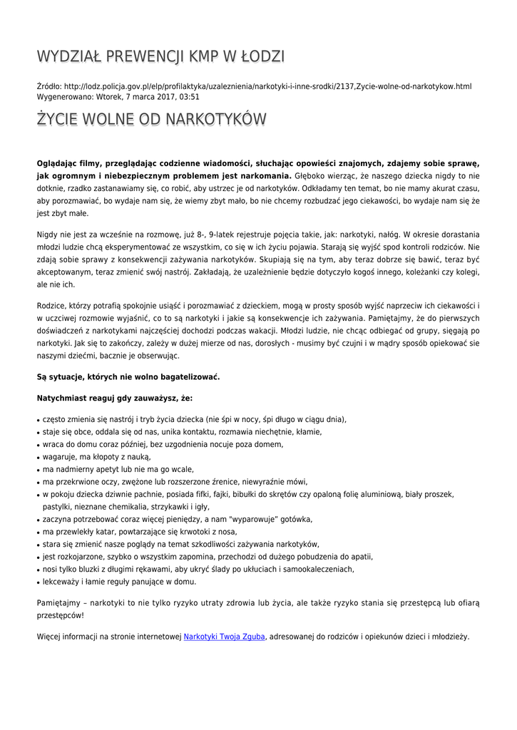 WYDZIAŁ PREWENCJI KMP W ŁODZI ŻYCIE WOLNE OD
