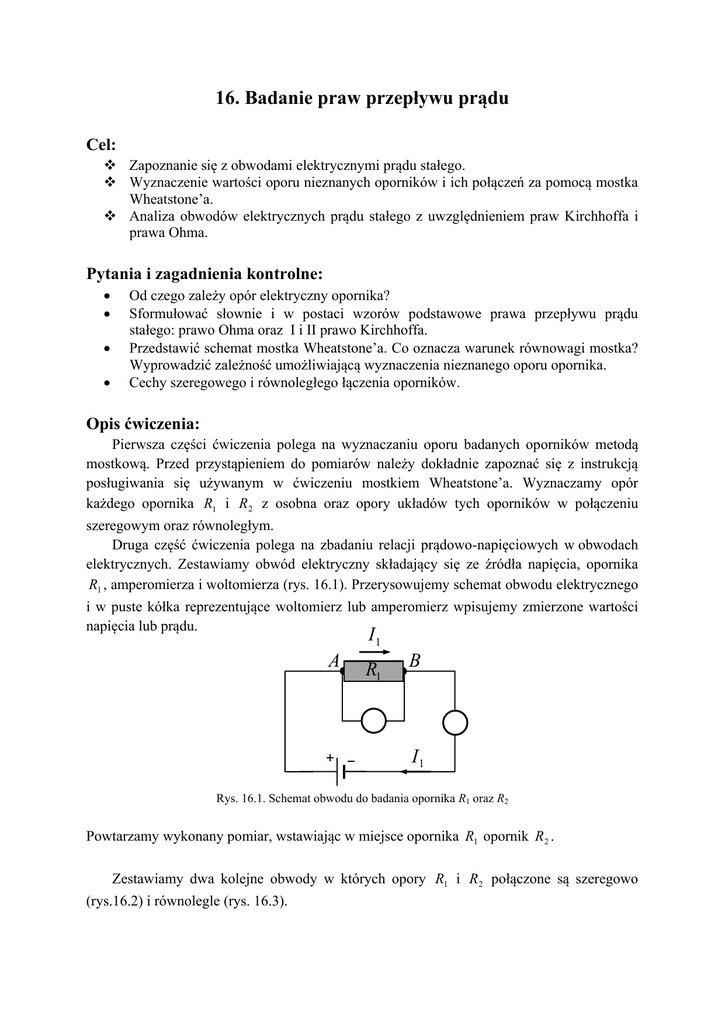 16. Badanie praw przepływu prądu I A B R I