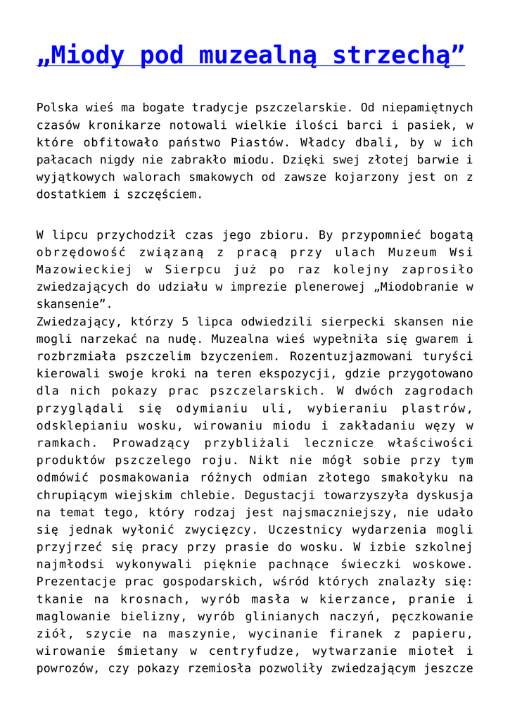 Miody pod muzealną strzechą