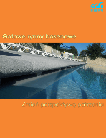 Gotowe rynny basenowe Zmień perspektywę patrzenia Gotowe rynny basenowe Wykonane maszynowo z milimetrową dokładnością, prefabrykaty gotowe do montażu na murze basenu. Dzięki nowoczesnej technologii produkcji, rynny można dowolnie pokryć: farba, lakier, płytka, mozaika szklana, folia PCW. Pozostawienie rynny w naturalnym kolorze jest również możliwe, jedynie wymagane jest zastosowanie farby epoksydowej. Szeroki wachlarz dostosowania wyglądu rynny, pozwala na idealne wkomponowanie jej w design basenu i obrzeża. Rynna Standard - prosta, estetyczna rynna o idealnych wymiarach. Kod artykułu: 19700 100 cm/84 kg Rynna Alto - wysoka rynna, spełniająca największe wymagania. Kod artykułu: 19705 50 cm/78,5 kg Gotowe rynny basenowe Rynna Canalboard Kod artykułu: 19710 - rynna o niecodziennym kształcie, nie ma potrzeby zastosowania kratki rynny. 60 cm/63 kg Rynny Alto i Canalboard posiadają wewnątrz stalowe zbrojenie, gwarantujące ich wytrzymałość. Wszystkie rynny dostępne, jako łuki (promienie na zapytanie). Rynna Standard jest dostępna również, jako narożnik prosty lub wewnętrzny. Istnieje opcja umieszczenia w rynnie rury odpływowej. Dla optymalnego przepływu, konieczne jest wygładzenie górnej krawędzi rynny od wewnętrznej strony basenu. Ważne jest, aby zastosować farbę epoksydową zarówno wewnątrz, jak i na zewnątrz rynny betonowej.