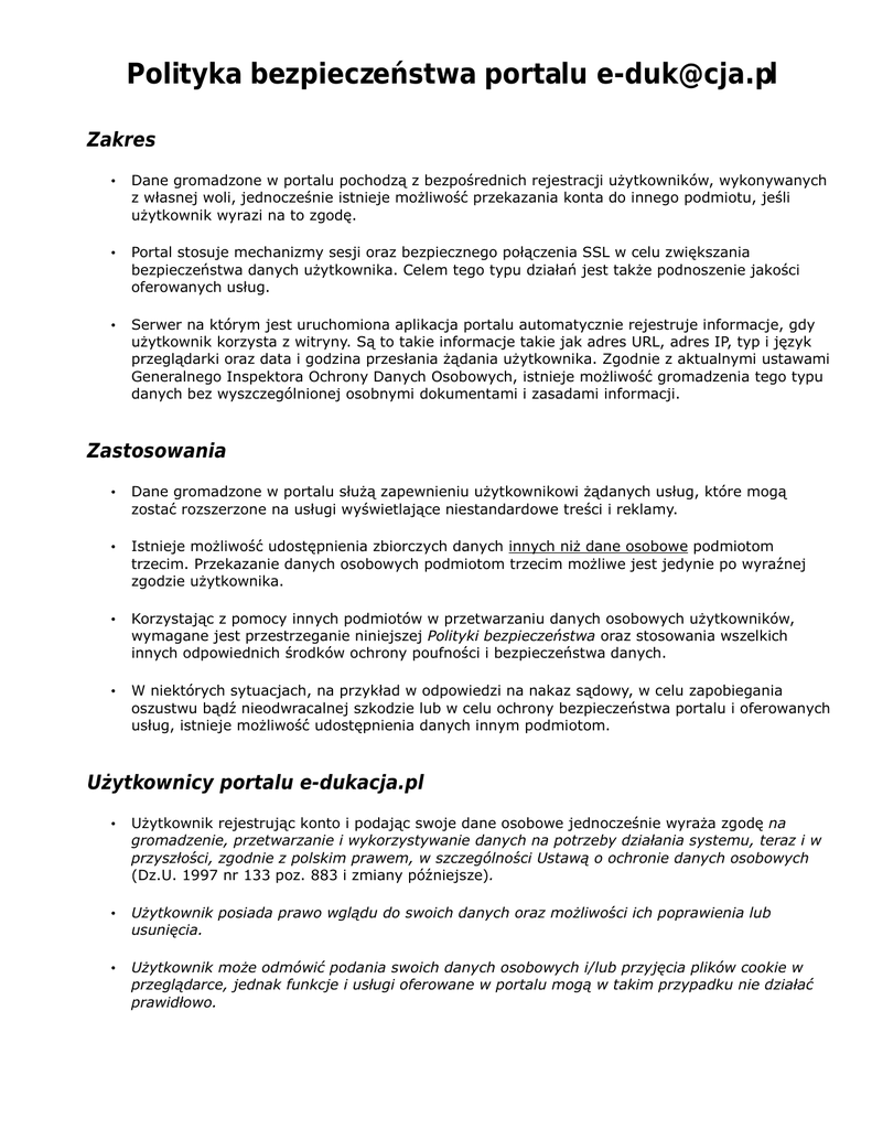 Polityka bezpieczeństwa portalu - E