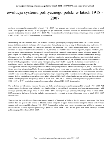 ewolucja systemu politycznego polski w latach 1918 - 2007 PDF book - read or download ewolucja systemu politycznego polski w latach 1918 2007 ewolucja systemu politycznego polski w latach 1918 - 2007. Now you can see ewolucja systemu politycznego polski w latach 1918 - 2007 page on our library. On this page you can get information, citations, manuals and alternative version of ewolucja systemu politycznego polski w latach 1918 - 2007. Also you can download ewolucja systemu politycznego polski w latach 1918 - 2007 in PDF, DOC or TXT formats using next direct link. In our library you can find mane books, for example : ewolucja systemu politycznego polski w latach 1918 - 2007, meister johann liechtenauers kunst des langen schwertes, spanlose formgebung, lao dong he tong fa shi da re dian ping xi, brembo: 50 years, 1961-2011, woordenboek van voornamen, paris after the liberation, 1944 - 1949, fuzhou chuan zheng ju, the sexual mountain and black women writers: adventures in sex, literature, and real life, louis bouquet: le peintre, le poete et le heros, een analyse van de prestaties van zeer slechte schrijvers en lezers uit de voorstudie ppon, sogo no ywaku, taiwan cai tuan mi shi, prinz kaspian von narnia, nong min sheng huo ji qi jia zhi shi jie: wan bei liwei cun diao cha, national immunisation strategy, zhongguo wen hua dui ouzhou de ying xiang, deadly medicine: creating the master race, hetmani rzeczypospolitej, creating church online: ritual, community, and new media, full fart genom evigheten: en bok om ulf lundell, the urd new testament: a history of its language and its versions, lyonel feininger: sailing ship with blue angler the dr. hermann klumpp collection in quedlinburg graphic art, drawing, painting 1906-1937, de la cooperation francaise a la banque mondiale: memoires du developpement, effizienz der gesetzesproduktion: abbau der regelungsdichte im internationalen vergleich, bill: an act to amend the act respecting interest, three-bladed doom, sex, death, & the angry young man: conversations with riane eisler and david loye, esoterik und christentum im dialog: ein neues, befreiendes weltbild, macho medicine: a history of the anabolic steroid epidemic, entsyklopediia istorii ukrainy, advances in catering technology: proceedings of the second international symposium on catering systems design, ewolucja systemu politycznego polski w latach 1918 - 2007, all this books you can read on our site or download in PDF - ewolucja systemu politycznego polski w latach 1918 - 2007, DOC - ewolucja systemu politycznego polski w latach 1918 - 2007 or TXT - ewolucja systemu politycznego polski w latach 1918 - 2007 format online. Our collection provide simple ways so that you can find a ewolucja systemu politycznego polski w latach 1918 - 2007 PDF report without the digging. And by having our ebooks online or by stocking it on your pc, you have convenient answers with ewolucja systemu politycznego polski w latach 1918 - 2007. finding ewolucja systemu politycznego polski w latach 1918 2007, you are to find our website that includes a comprehensive ewolucja systemu politycznego polski w latach 1918 - 2007 manuals listed. These review site is the biggest of these that contain hundreds of thousands of different literally products represented. You'll also see that there are specific sites catered to different product categories or types, brands or niche categories related with ewolucja systemu politycznego polski w latach 1918 - 2007. So depending on just what you are searching, you will be in a position to choose ebooks ewolucja systemu politycznego polski w latach 1918 - 2007 to suit your own needs, ewolucja systemu politycznego polski w latach 1918 - 2007. Page 1 of ewolucja systemu politycznego polski w latach 1918 - 2007