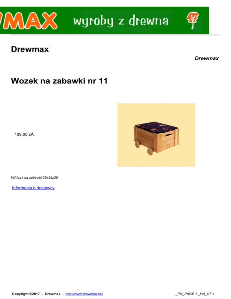 Drewmax Drewmax Wozek na zabawki nr 11 109.00 zÅ‚ Wózek na zabawki 35x55x38 Informacja o dostawcy Copyright ©2017 - Drewmax - http://www.drewmax.net _PN_PAGE 1 _PN_OF 1